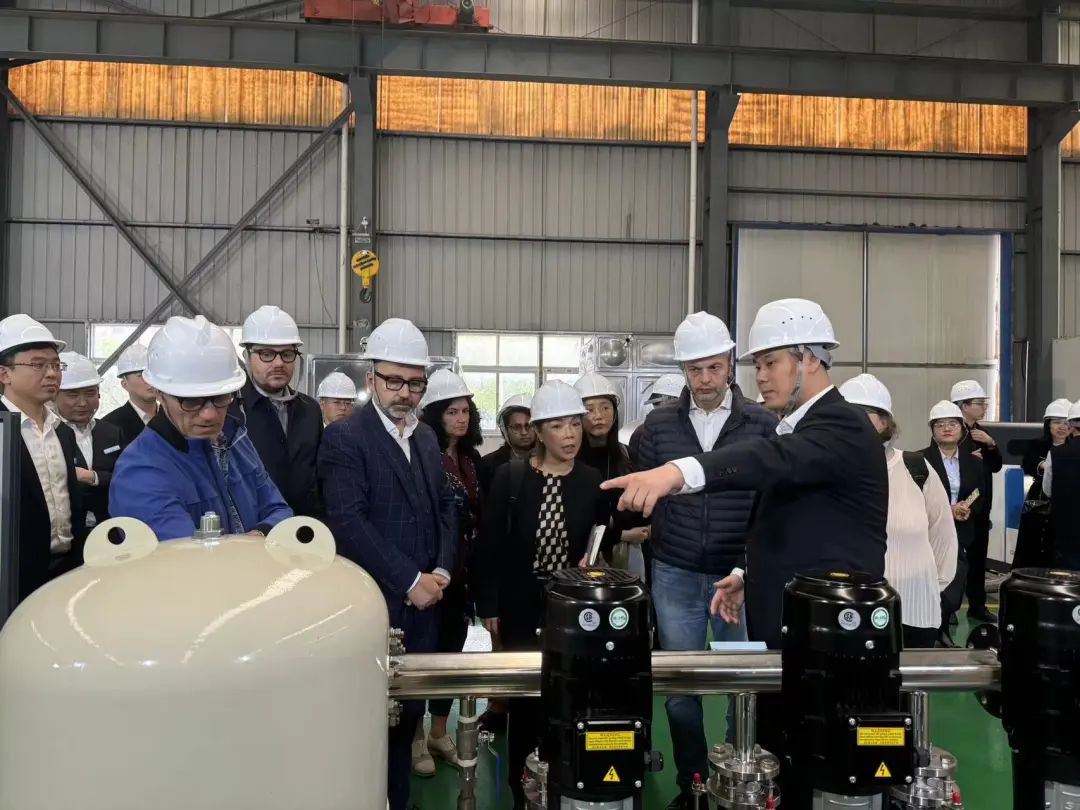 市長(zhǎng)斯蒂凡諾先生一行先后參觀我司的展廳、二次供水設(shè)備生產(chǎn)車間,了解二次供水設(shè)備的運(yùn)用領(lǐng)域及生產(chǎn)工藝,在總經(jīng)理陳科宇的介紹下,市長(zhǎng)斯蒂凡諾先生一行對(duì)二供產(chǎn)品精細(xì)化的生產(chǎn)工藝為之贊嘆,同時(shí)也對(duì)我司生產(chǎn)車間的環(huán)境管理進(jìn)行夸贊。